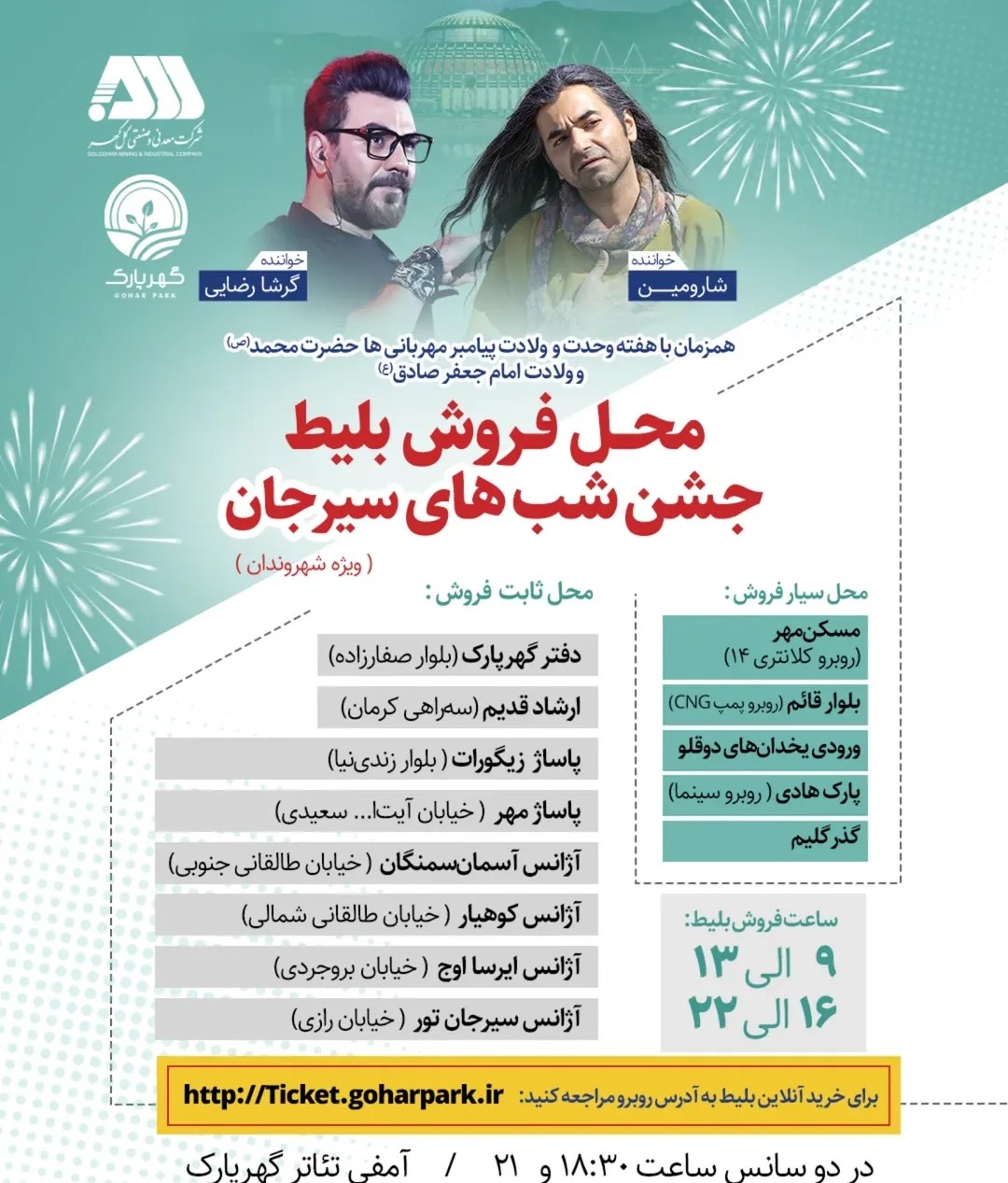 محل فروش بلیط جشن شب های سیرجان (ویژه شهروندان)