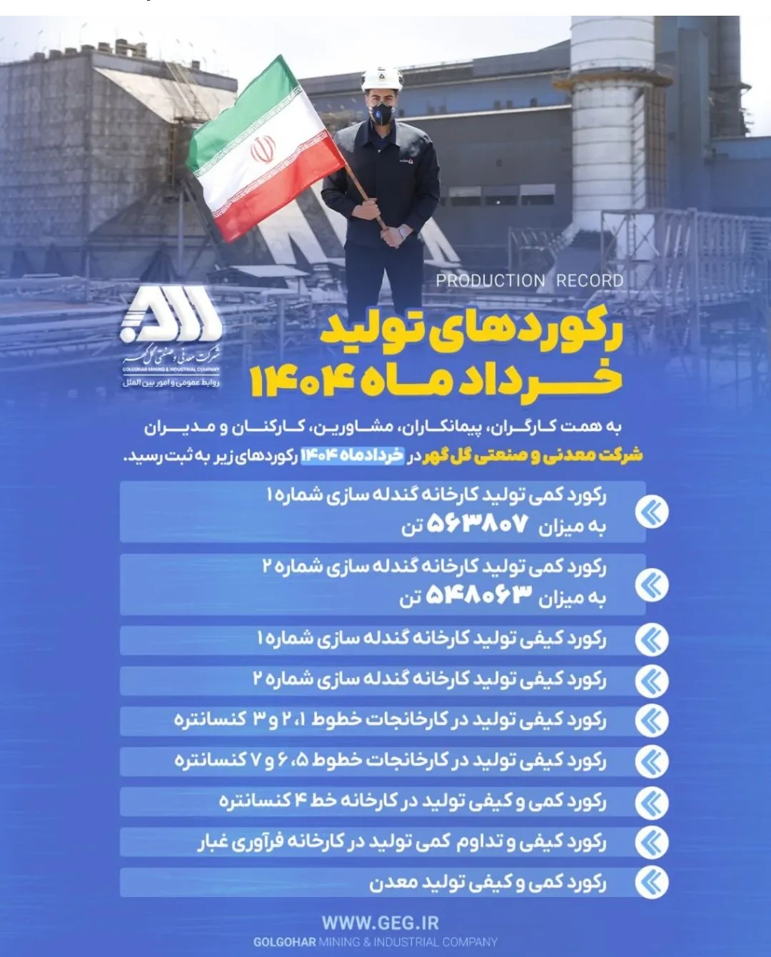 رکوردهای تولیدی خردادماه 1404 در شرکت معدنی و صنعتی گل گهر
