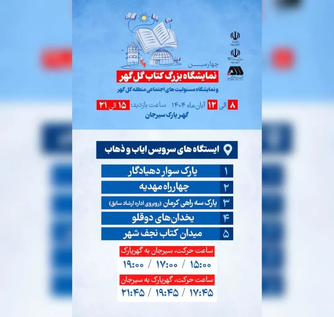 آدرس و ساعت حرکت سرویس های ایاب و ذهاب جهت نمایشگاه بزرگ کتاب گل گهر